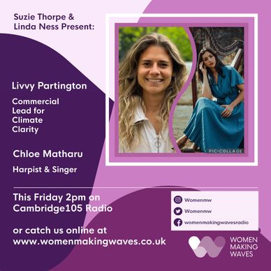 Chloe Matharu is a singer songwriter who plays the harp. Chloe’s music is inspired by the sea and her time working in the Merchant Navy; and Olivia Partington is dedicated to helping find solutions in fighting climate change and creating ways to inspire young people to get involved.